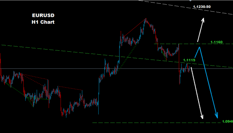 মার্কেট এখন ১.১১১৫ রেসিস্টেন্স জোন এ অবস্থান করছে, যতক্ষণ মার্কেট এই জোন এর নিচে অবস্থান করে আছে তা আরও কমে ১.০৯৪০-৭০ এর দিকে চলে যেতে পারে।