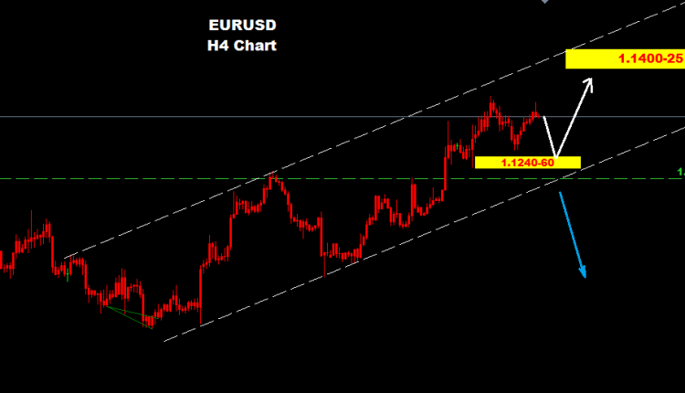 আমারা এখন পর্যন্ত অনুমান করছি মার্কেট ১.১২৪০-৬০ এর থেকে বেড়ে ১.১৪০০-২৫ এর দিকে হিত করতে পারে।