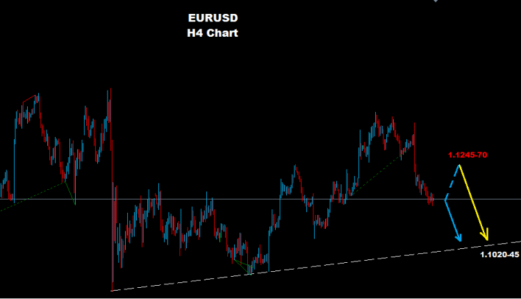 মার্কেট এখন ১.১২৪৫-৭০ রেসিস্টেন্স জোন এ ফেস করে আছে যতক্ষন মার্কেট এর নিচে হোল্ড করে আছে তা আরও ডাউন্ট্রেন্ড ওয়েভ করে আমাদের ট্রগেট এ হিট করতে পারে।