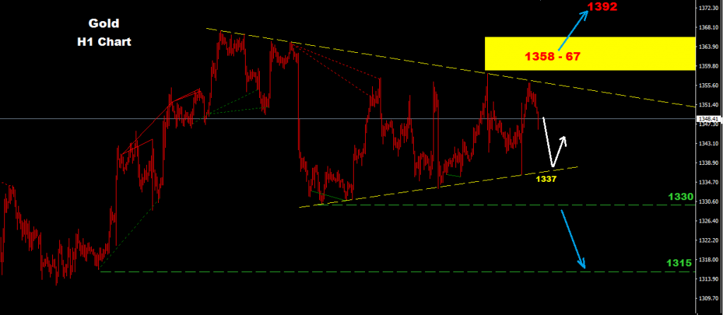 market still holding trades inside Triangle Formation where support zone now at 1337-38 which may provid another advance toward 1355 zone