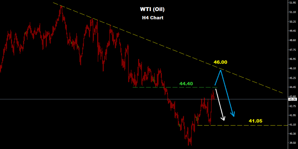 যদি মার্কেট ৪৪.৪০ এর উপরে ব্রেক করতে ব্যর্থ হয় তাহলে তা আরও ড্রপ কারেকশন করে ৪১.০৫-৩০ তে হিট করতে পারে।