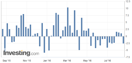 Earlier in the week on Tuesday, API Crude oil inventory report showed a drawdown of 1 million barrels. Gasoline stockpiles fell 2.7 million barrels, exceeding expectations of a 1.6 million drawdown. However, oil prices continue to remain volatile as news reports suggested that Saudi Arabia could start boosting its oil output once again with estimates showing that the oil output could exceed that of Russia’s. Meanwhile, in the background the OPEC meeting in September which has sparked rumors for a global output cut continued to weigh on oil traders.