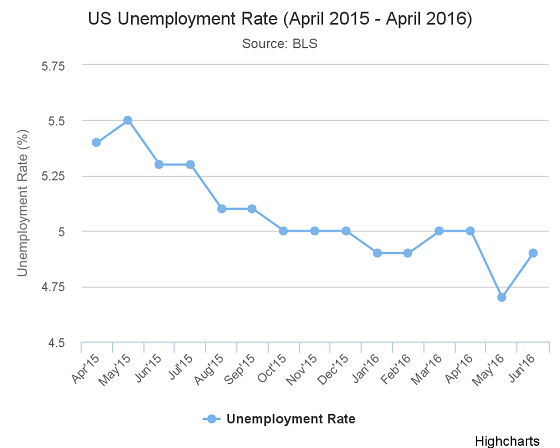 The June NFP report showed that the nonfarm payrolls increased to a seasonally adjusted print of 287k marking one of the strong jobs report since October 2015. The payrolls also beat the consensus estimates of 175k by a strong margin and reversed the disappointing May jobs report which was revised from 38k to only 11k.