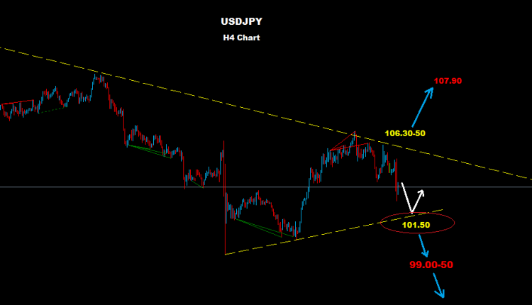 below 101.50 market may add more drop pressure to sustain movement toward testing the second support 99.00-50 zone