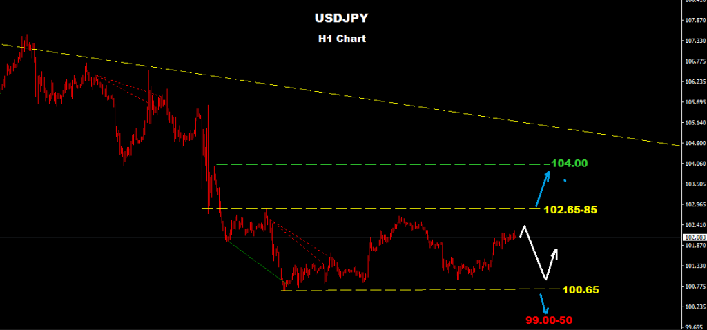 মার্কেট রিবাউন্ড করে ১০২.০০ তে অবস্থান করছে যা কিনা ১০১.৫০ কে ব্রেক করে।
