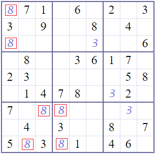 الأماكن المحتملة لوضع الرقم “8” متصلة ببعضها وتؤثر على نتائج أرقام أخرى في الكتلة.