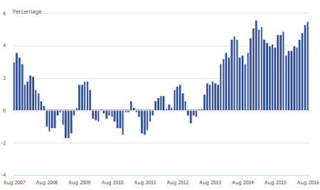 Consumer spending in the UK fell at the rate of 0.20% on a month over month basis in August, data from the Office for National Statistics showed today. The data was, however, better than forecasts of a 0.50% decline, indicating that consumers did not hold back from spending post-Brexit. On a year over year basis, retail sales were 6.20% higher compared to a year ago. July’s retail sales were also revised higher, from initially reported 5.90% to 6.30%.