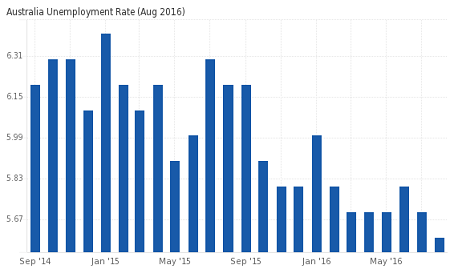 The monthly labor market data released by the Australian Bureau of Statistics showed on Thursday that employment in the country is increased by 3.9k during August, while unemployment fell by 10,500.