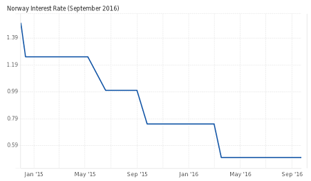 Analysts at DNB say that the Norges Bank could keep interest rate unchanged for the remainder of 2016 while maintaining that economic data will continue to improve. “The central bank’s own forecasts signal a 20% likelihood of a rate cut in December,” DNB says, lowering the risks of further changes to interest rates.