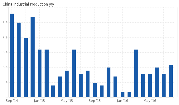 The NBS data also showed that retail sales advanced 10.60% on an annualized basis, rising above forecasts of 10.20%, which was the same pace of growth in retail sales a month ago. Fixed asset investment grew at the rate of 8.10% on the year on year basis in August and was above forecasts of 7.90%. Fixed asset investment is seen as a proxy for long-term spending. Growth in government spending on fixed assets fell 0.40% to show 21.40% growth on the year in the first eight months of 2016. Private investment growth was, however, unchanged at 2.10%.