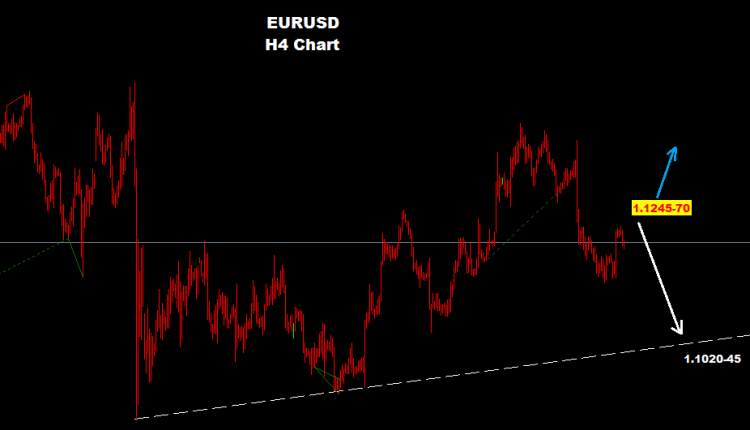 মার্কেট রিবাউন্ড কারেকশন করে ১.১২৪৫-৭০ জোন এর দিকে চলে গেছে যেখানে আমরা ধারনা করছি মার্কেট আরও ড্রপ করে ১.১০২০-৪৫ জোন এর দিকে চলে যেতে পারে।