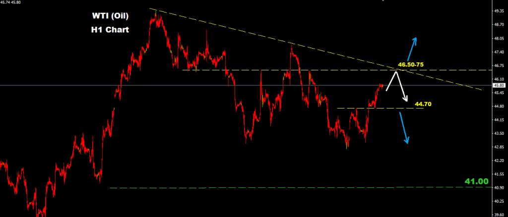 from that zone will expect the downtrend pressure to back over Crude Oil where support level will sustain at 44.70