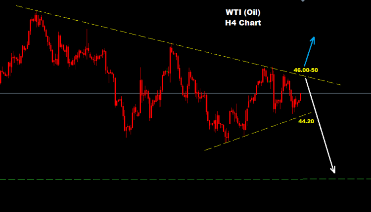 Oil managed to rebound from 44.20 which will consider as intraday support level where mrket still facing resistance zone at 46.00-50