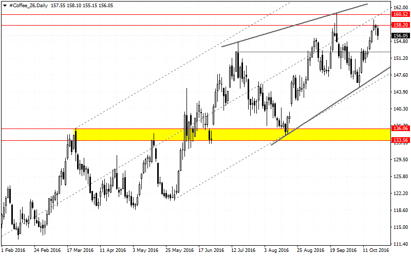 Coffee futures contracts extended gains this week as the price of Arabica futures contract for December delivery touched a fresh two-year high, closing on Wednesday at 158.20 cents. The rally came after a weak start to the month as price briefly fell to August highs near 147 – 146 cents before staging an impressive rally.