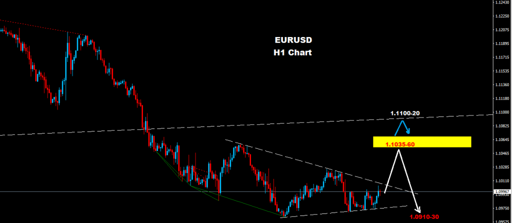 মার্কেট ১.০৯৬০ সাপোর্ট জোন এ হোল্ড করে আছে যা কিনা পরবর্তীতে ১.১০৩৫-৬০ রেসিস্টেন্স জোন এ টেস্ট করতে পারে।