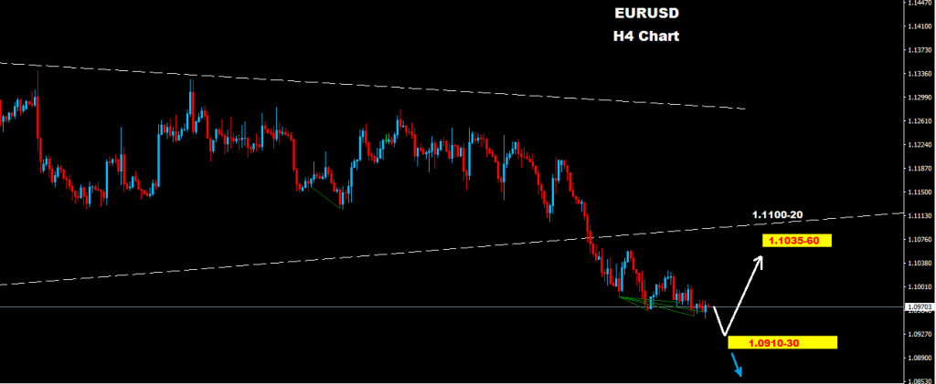 মার্কেট এখন ১.০৯১০ তে ফেস করে আছে যা কিনা ১.১০৫০ তে অথবা এর উপরে রিবাউন্ড কারেকশন করতে পারে।