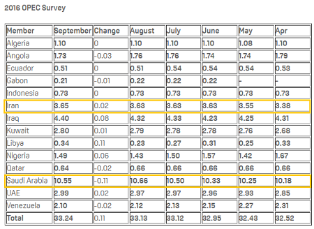 While oil prices took a back seat since the Algiers summit, OPEC officials are slowly starting to turn back the heat. Last Friday, October 7th, it was reported that OPEC officials were planning to lay the groundwork to reach a firm conclusion and formalize the Algiers agreement at the next OPEC meeting on November 30th. Reuters reported that some of the OPEC ministers would be meeting in Istanbul this week for the World Energy Congress.