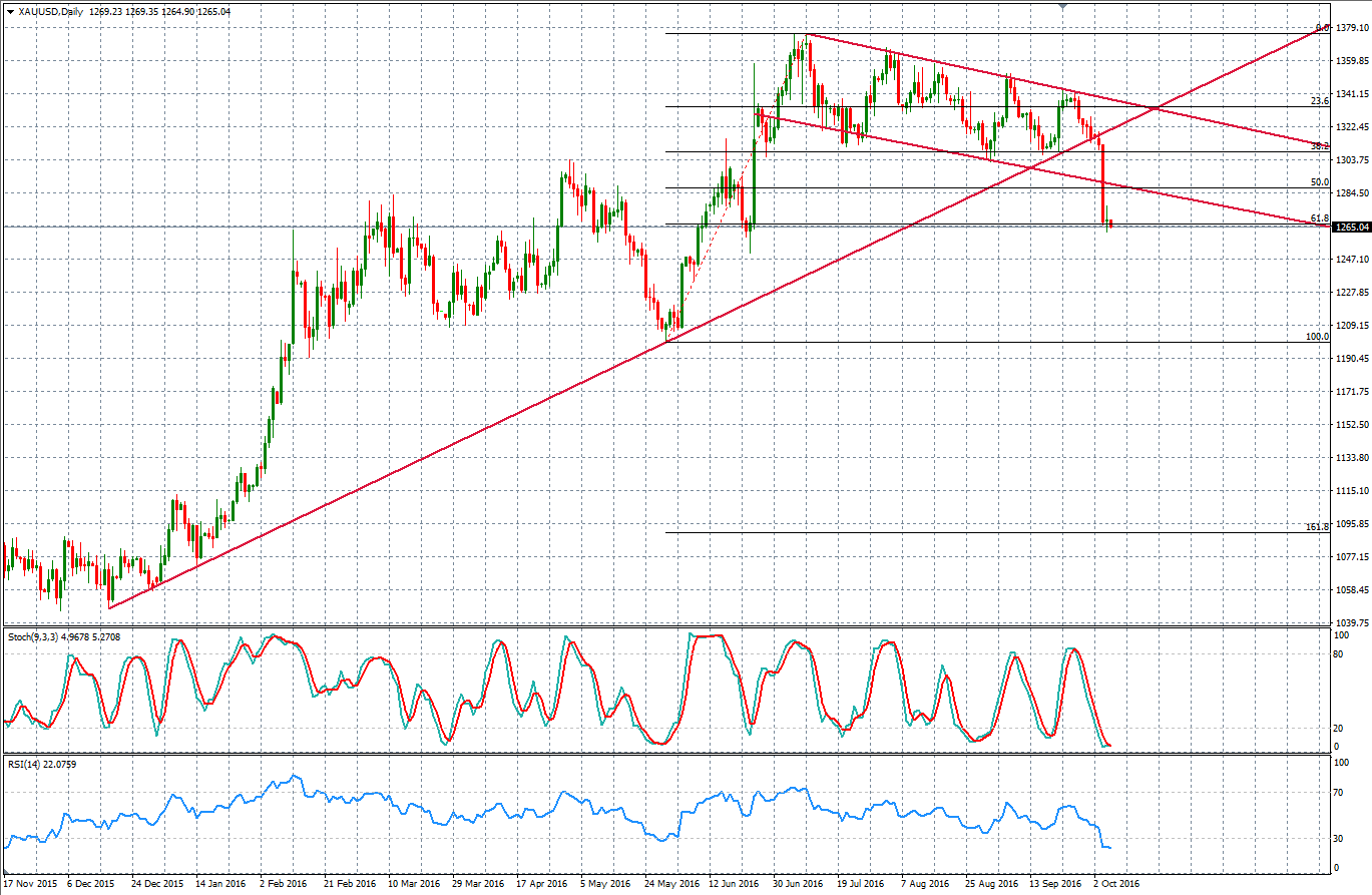 Gold peaked in June at around $1374 as the Federal Reserve delayed the rate hike, causing the US Dollar to fall back then, declining all the way back to 93.0. Since then, Gold has been trending gradually lower, trading within a downward channel that is shown on the chart. There were many attempts for a breakthrough that channel but without any chance.