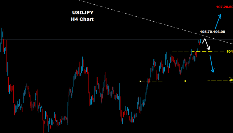 above 106.00 the market may have chance to build more advance toward 107.30-50 with support zone at 104.30-60