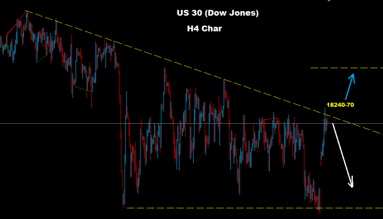 Dow managed to advance above 18150 where managed to re-test resistance 18240-70 while prited above this resistance before retreating fast below downtrend line