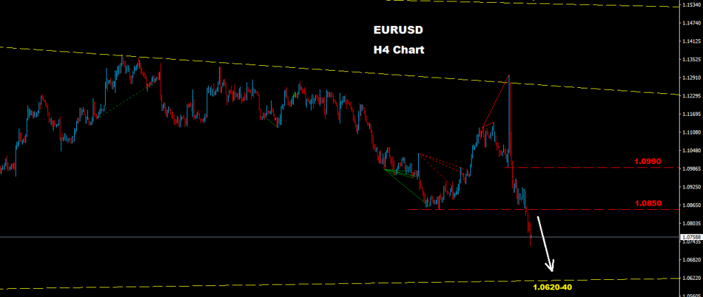 মার্কেট ১.০৮৫০ এর নিচে অবস্থান করছে যা কিনা আরেকটি ডাউন্ট্রেন্ড প্রেশার ওয়েভ করে ১.০৬২০-৪০ এর ভেতরে টার্গেট করতে পারে।