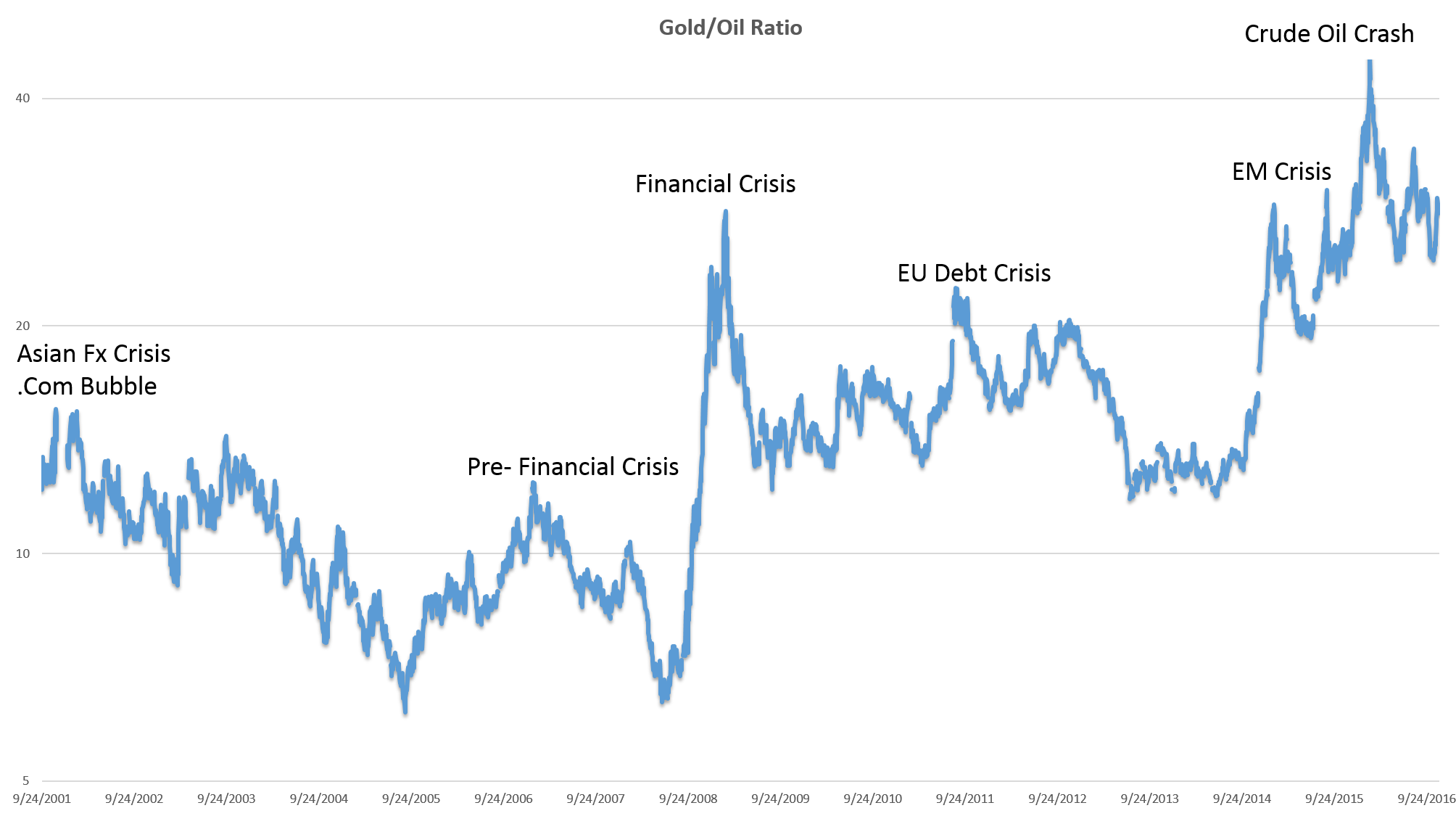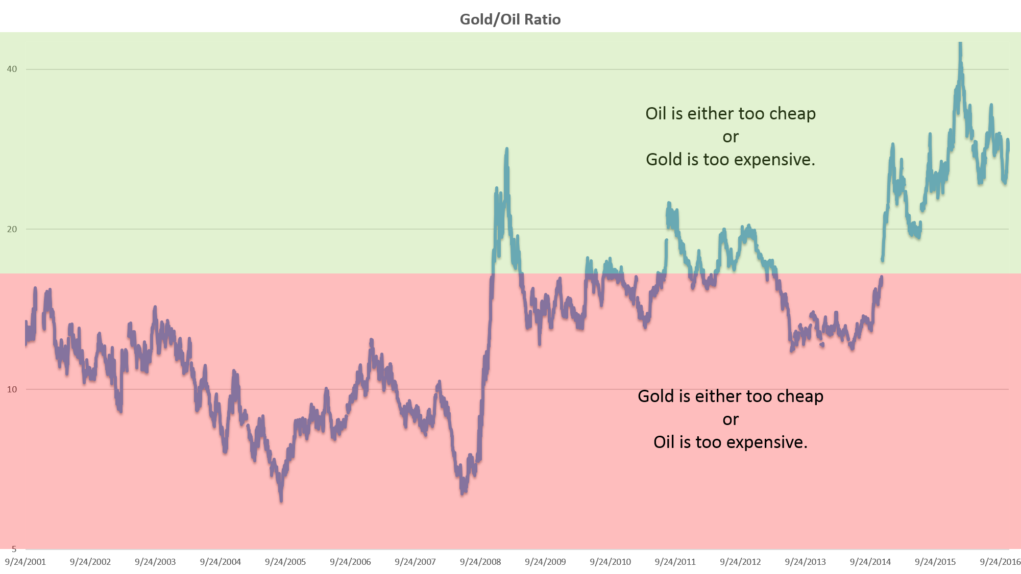 What this ratio infers is that when the current ratio is below 15.4, gold is either too cheap, or oil is too expensive. When the ratio is greater than 15.4, oil is either too cheap, or gold is too expensive. Did you understand anything? No. I know. Let’s move on anyway.