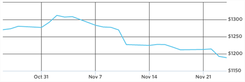 The better than expected report saw the US dollar gain momentum. Gold prices which flat for nearly three days broke down below the psychological support of $1200, closing yesterday at $1188.15.