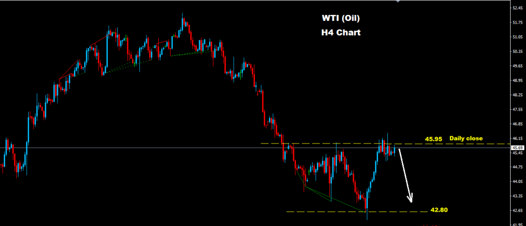 ক্রুড তেল আবারও ৪৫.৯৫ রেসিস্টেন্স এর উপরে চলে যেতে সক্ষম হয়েছে যা কিনা প্রতিদিন এই লেভেলের নিচে ক্লোজ হতে পারে।