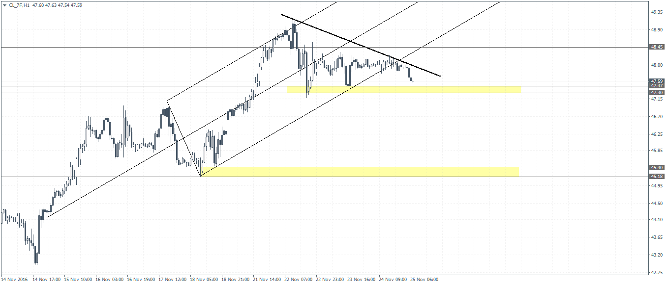 Earlier this week, Oil prices touched a 3-week high at $49.20 amid noise from the side meetings as OPEC member countries continue to negotiate internal deals. Ahead of the US Thanksgiving holiday, Crude oil futures for January 2017 delivery closed at $47.96 a barrel down 0.07% for the day.