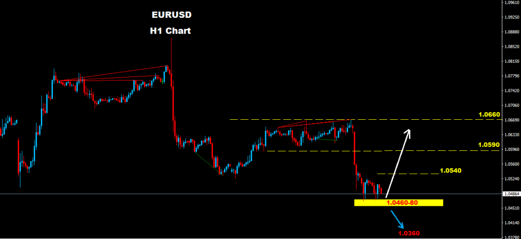 EURUSD managed to head for farther drop after Fed hike rate yesterday where managed to test target and support zone 1.0460-80