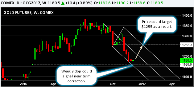 Gold futures contracts for February month managed to lift off from fresh yearly lows of $1160 this week, just $10 shy of the psychological $1150 support level.