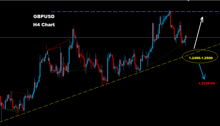 British pound facing support zone at 1.2490-1.2500, where as long as market holding above this zone another rebound correction may hit the market toward 1.2725 zone