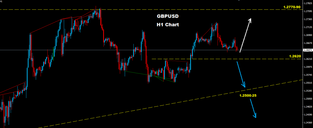 পাউন্ড টেস্ট সাপোর্ট জোন ১.২৬২০-৬০ এর দিকে বেক করেছে যতক্ষণ মার্কেট এই সাপোর্ট জোন হোল্ড করে আছে তা আরেকটি এডভান্স হয়ে ১.২৭৫০-৭৫ এর দিকে চলে যেতে পারে।