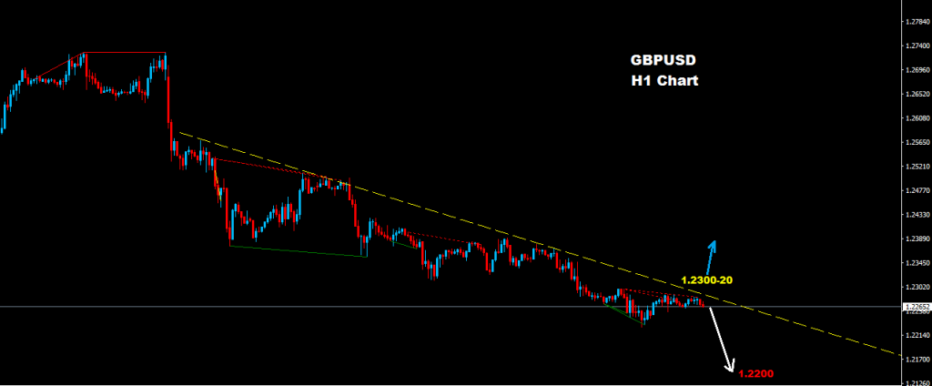 Market now facing first resistance at 1.2300-20 zone where as long as market holding below more drop yet to come toward 1.2200 and 1.2100 zone
