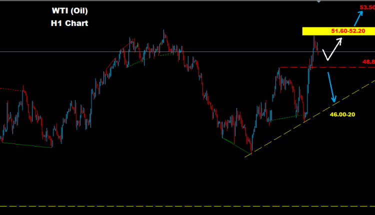 Crude Oil managed to advance toward target 51.60-52.20 where market faced some resistance there