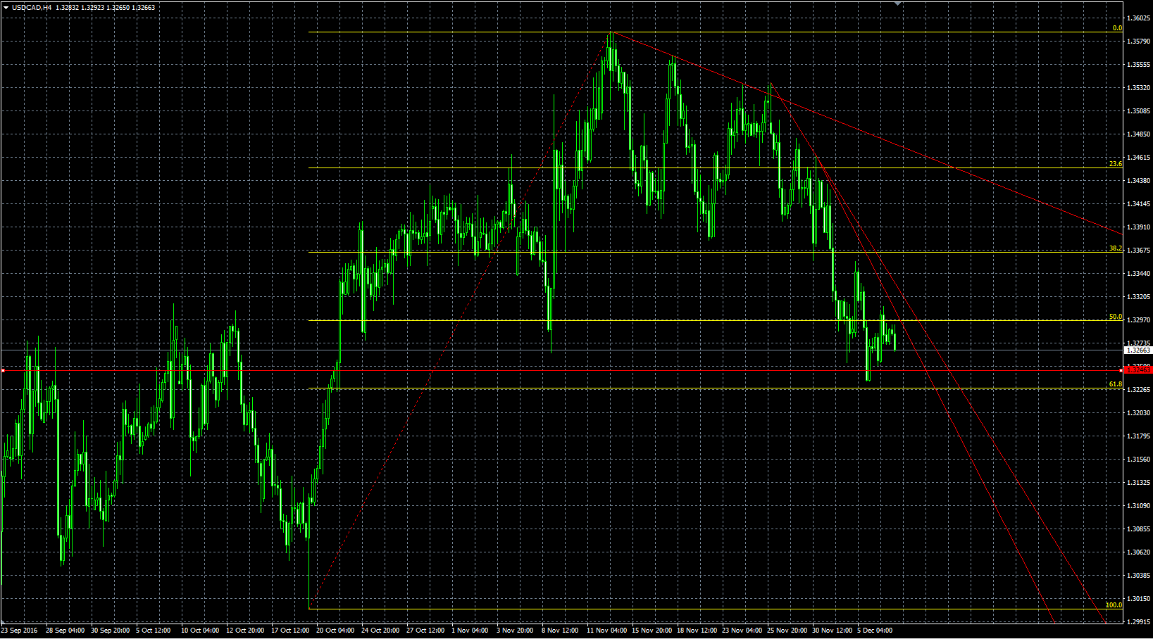 USDCAD peaked around 1.3570s at the beginning of November. Since then, he pair traded within a tight range until OPEC announced a deal to cut the oil production. The deal was the catalyst for a sharp decline all the way back 1.32 areas as Crude Oil prices added more than 10% of gains. The pair is now trading between the 50% and 61.8% Fibo retracement levels which should be watched very carefully as a breakthrough 1.3246 level might open the way for further declines ahead.