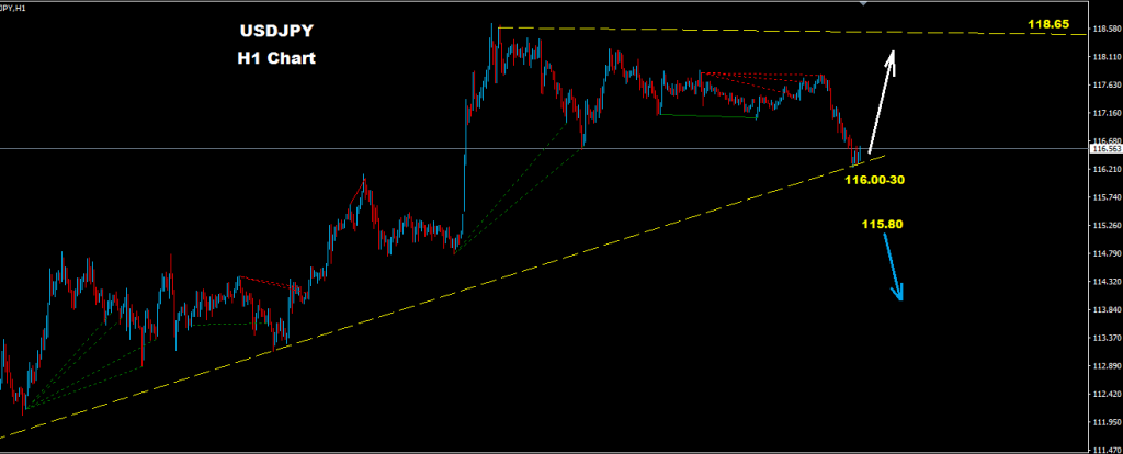 Market facing support level for the uptrend line around 116.00-30 zone