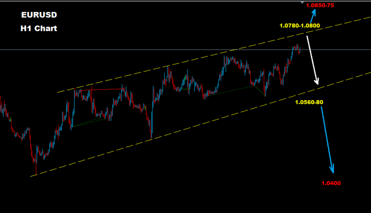 মার্কেট ১.০৭৮০-১.০৮০০ রেসিস্টেন্স জোনের আশাপাশে ফেস করে আছে, যেখানে ১.০৫৬০-৮০ সাপোর্ট জোন হিসেবে কাজ করছে।