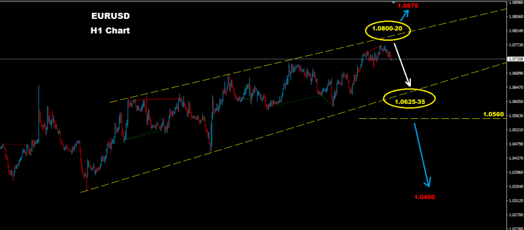 EURUSD still holding short run tarding inside our uptrend channel where resistance level has risen toward 1.0800-20 zone, while support line hover around 1.0625-35 zone