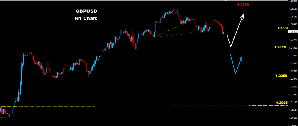 GBPUSD managed to fell below 1.2550 which may provide farther drop for intraday frame where market facing support at 1.2420