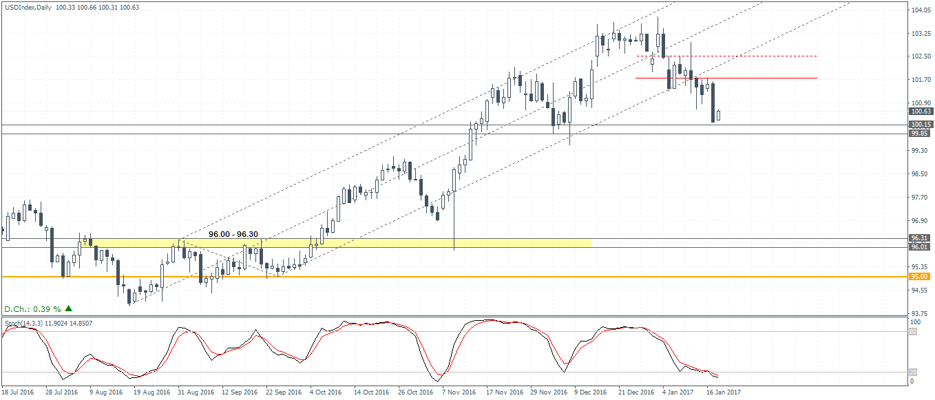 His comments sent the greenback into a tailspin while media working overtime, calling it a change in the nearly two-decade policy led by the Clinton administration of favoring a stronger currency. The US Dollar was showing signs of exhaustion to the nearly two straight months of the rally which sent the dollar index surging past the 100.00 psychological level which it failed to break last year to eventually rise to a 14-month high before turning flat.