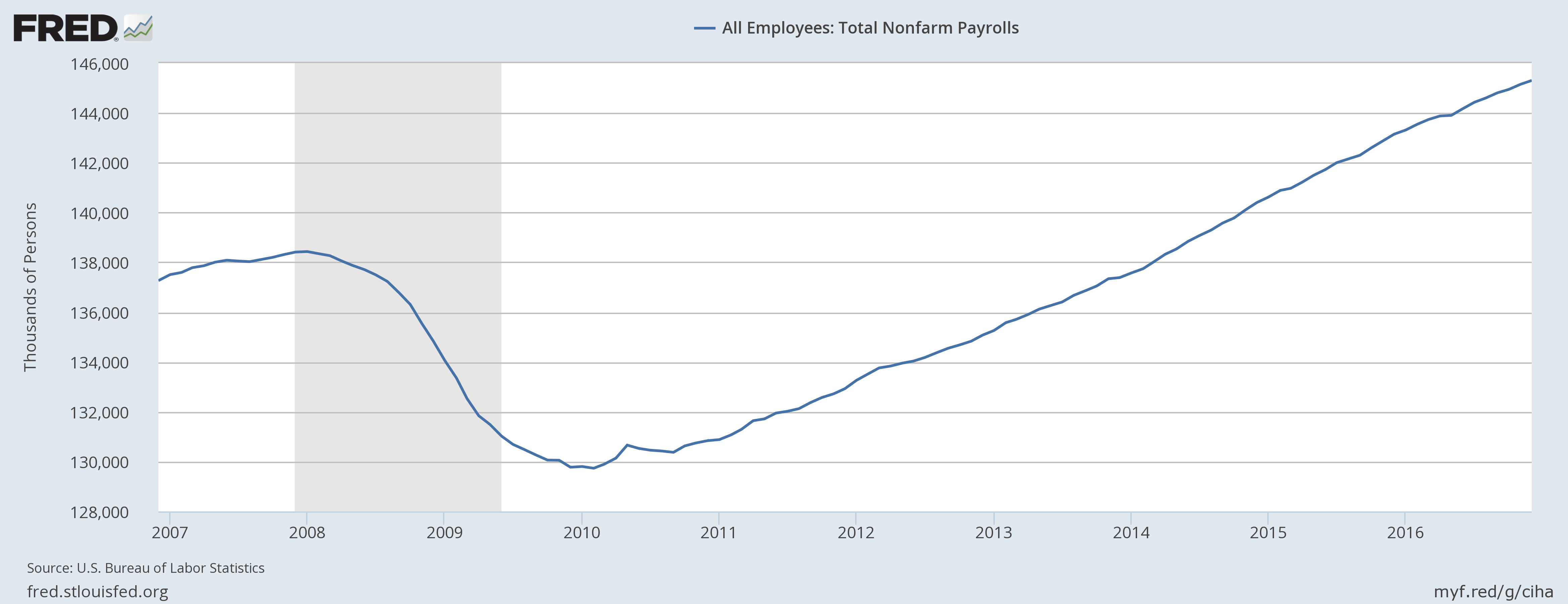 On the contrary, the President-elect Trump will be taking over a rather different economy.