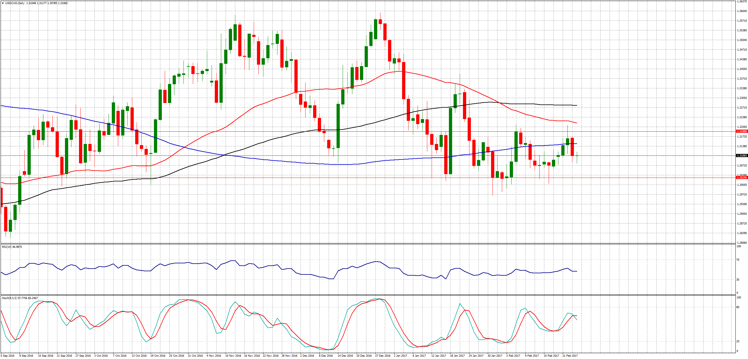 USDCAD has been trading within a tight range for almost two weeks now, between 1.32 and 1.30, hovering around its 200 DAY MA with no clear break above or below that MA so far.