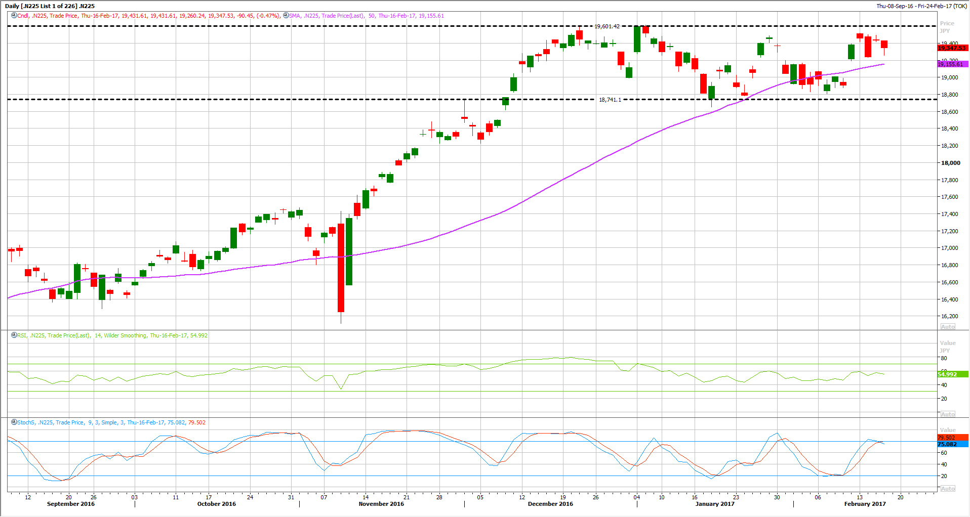 Nikkei 225 have been trading within a tight range since the beginning of the year, between 19500 and 18800 with no clear break above or below those levels.