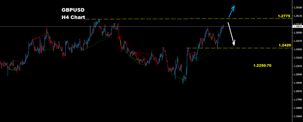 GBPUSD managed to hold trades above first support 1.2540 where managed to resume advance above 1.2675 level