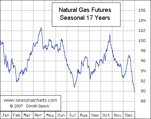 The seasonal chart for the natural gas futures below shows the tendency for NG futures prices to bounce off during February/March before prices start to post a steadily rally into late April.