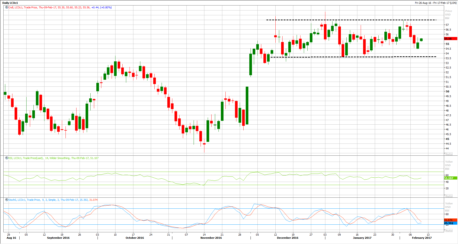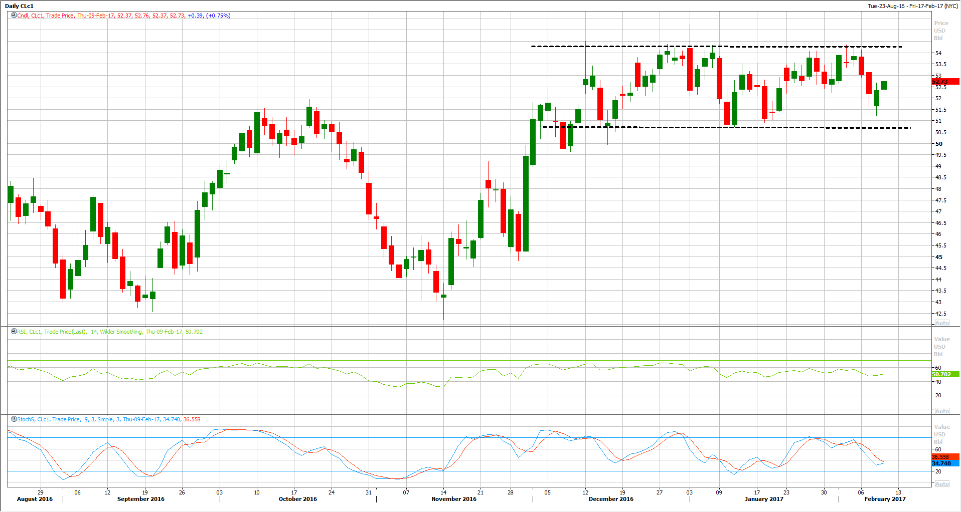 Since the beginning of the year, Crude Oil prices has been trading within a sideways trend. WTI is trading between $51 and $54, while Brent is stuck between $54 and $57, New with no clear direction.