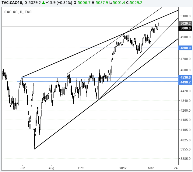 As with any stock index, investors are likely to sell off the CAC40 into the French elections, at least into the first round of elections, which is due late April.