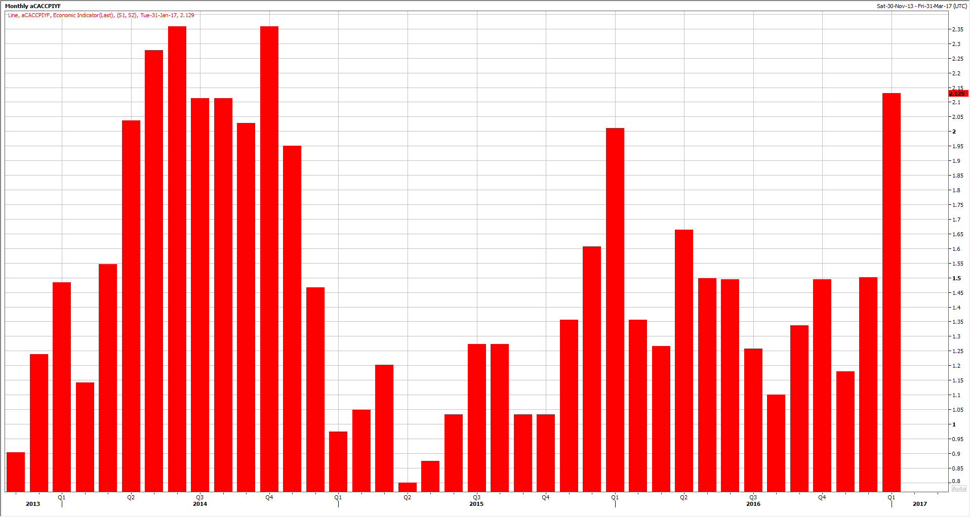 The CPI YoY increased to the highest level since October of 2014 at 2.13%, which is above the Bank of Canada target.