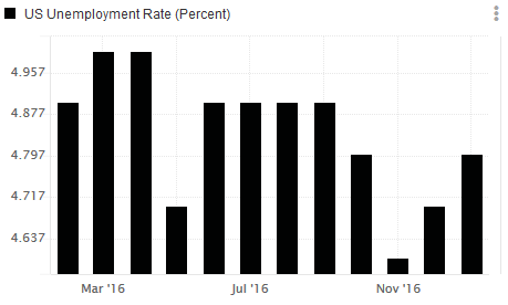 Economists polled expect the U.S. unemployment rate to fall to 4.7%, from 4.8% last month in January, while wages, which will once again remain at the center, is tipped to increase 0.3% on a month over month basis.